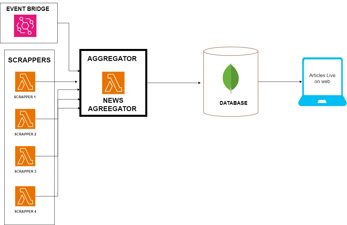 Articles are scraped from various sources and stored in the database using scheduled ⌚ Cron Jobs. This automated process ensures a regular influx of new content.